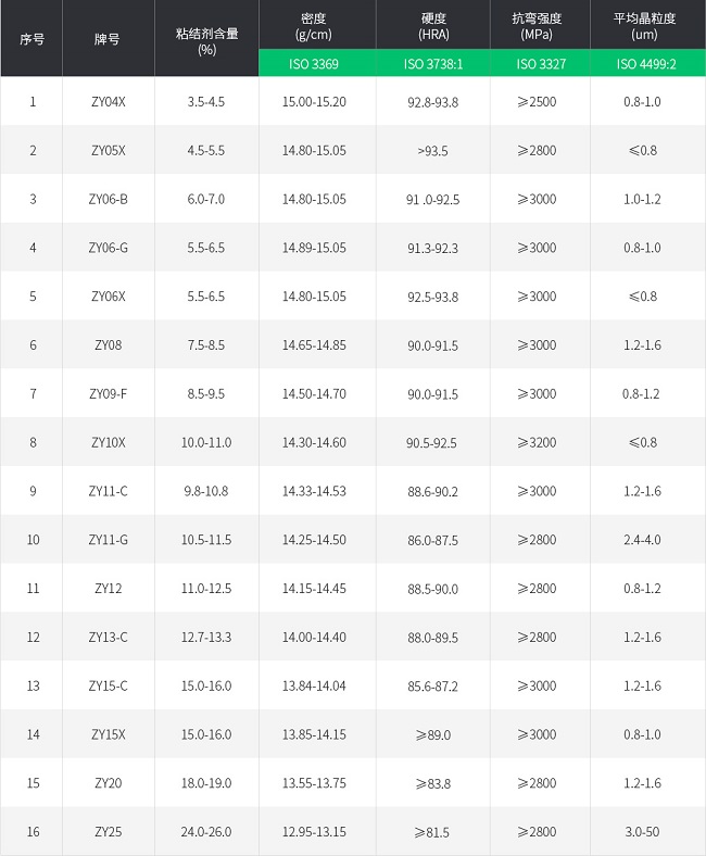 鎢鈷硬質合金品種繁多,按用途可分為鎢切削工具、礦山工具和耐磨工具三大類。我們選擇硬質合金制品時,可根據這三種情況選擇。具體性能可參照上表,選擇合適的牌號適應相關工況的應用。