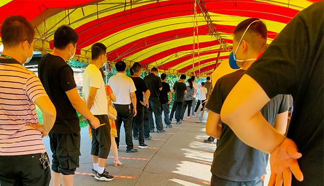 門崗門衛檢查綠碼,對黃碼人員一律按政策執行,不允許上班,不存在任何僥幸心里。