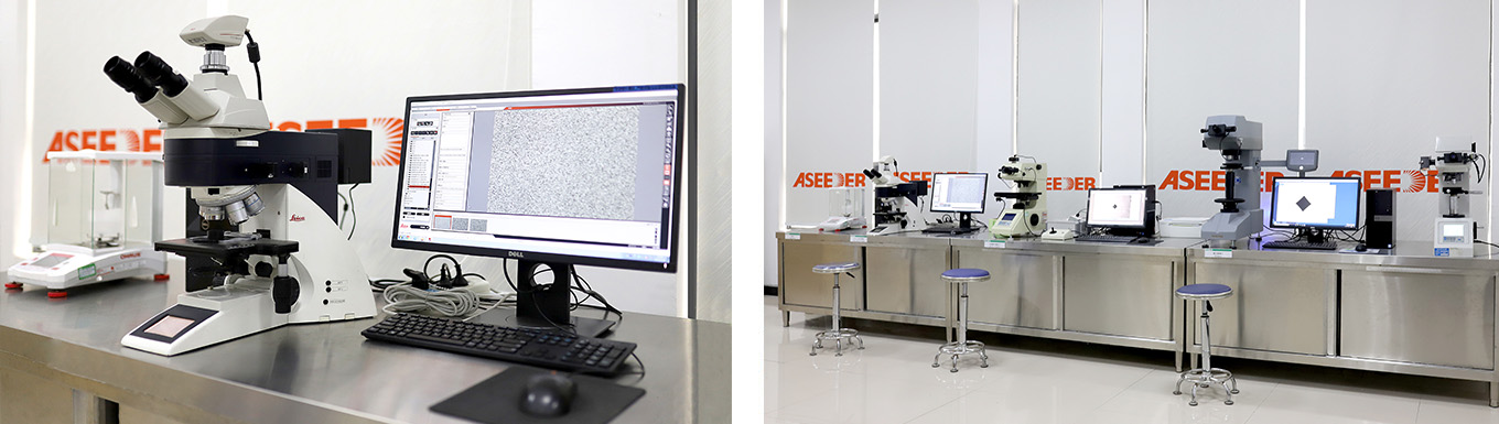 公司具備硬質(zhì)合金,金屬材料的物理性能、化學(xué)成分的分析測(cè)試能力,包括金相分析,密度,硬度,抗彎強(qiáng)度,孔隙度和非化合碳,鈷磁,磁力,拉伸強(qiáng)度,沖擊功等。